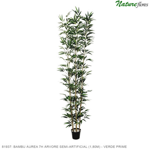 Bambu Áurea 7H Árvore Semi-Artificial – Verde Prime, (Phyllostachys) também é conhecida como bambu-mirim ou bambu dourado. Assim, sua folhagem artificial é pequena e delicada adornando desde a base até ao topo da planta com tons variados de verde. Assim sendo, o Bambu tem uma aparência rústica e harmônica com haste natural desidratada, sendo assim versátil na decoração. Adicionalmente, use Pedra Ornamental ou Casca de Pinus para fazer o acabamento da decoração do vaso ou jardim. Assim, o Bambu Áurea 7H Árvore Semi-Artificial – Verde Prime, adiciona cor, textura e elegância aos mais diversos ambientes. Por fim, uma alternativa prática e livre de manutenção para decorar ambientes sem preocupação.